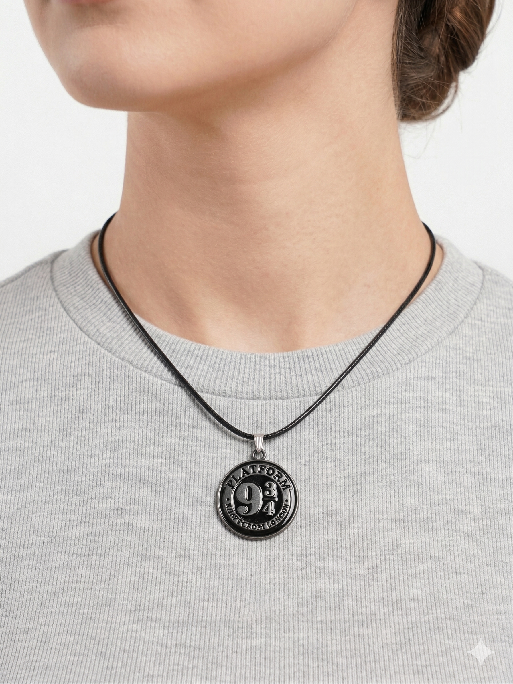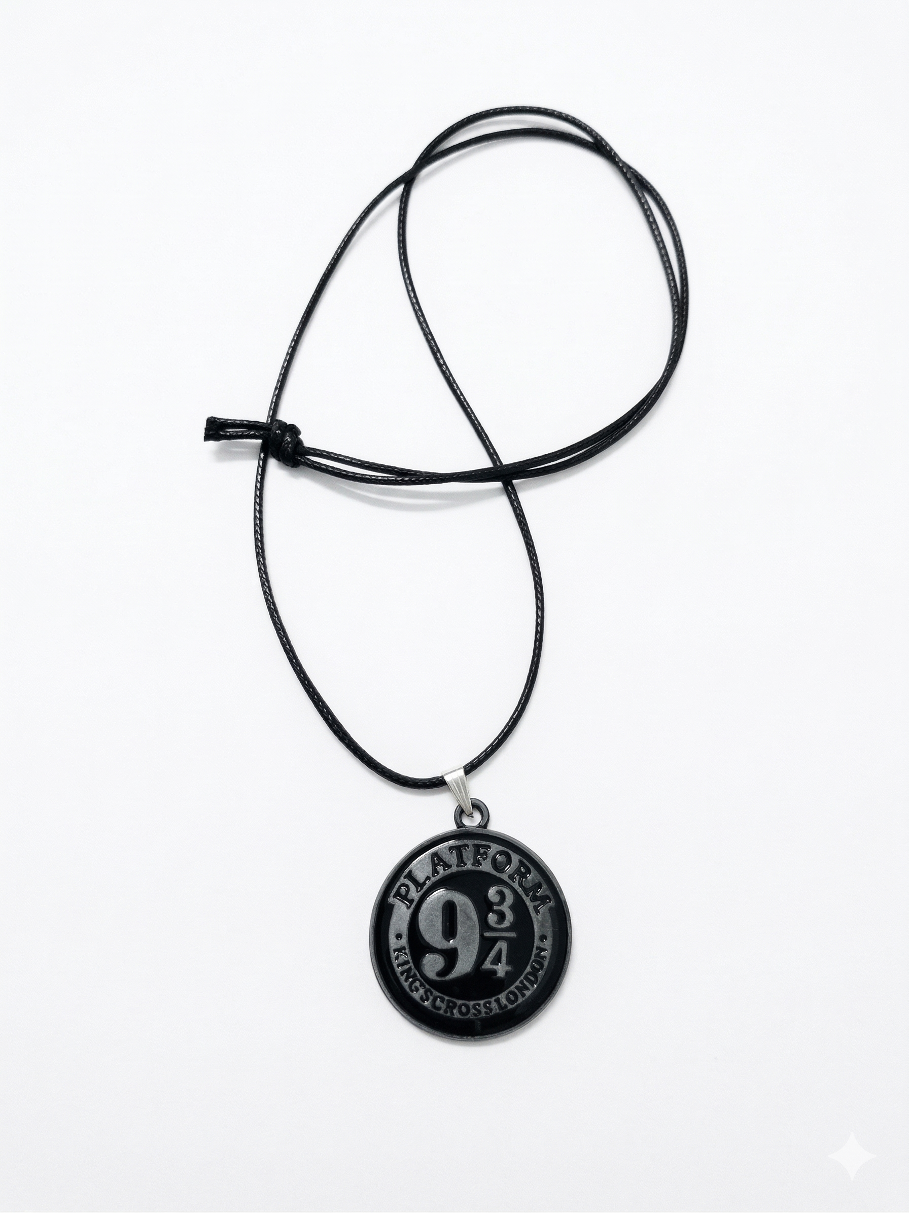 This necklace depicts the famous 9 3/4 Platform at Kings Cross Station from where Hogwarts students gain access to the Hogwarts Express